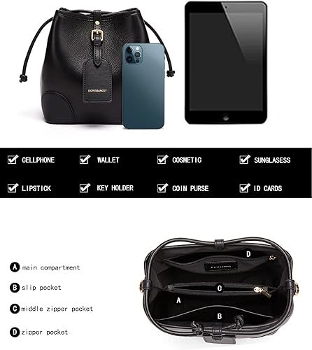 Home Accessories DORIS&JACKY 真皮水桶斜挎钱包小号设计师抽绳单单单肩包女式