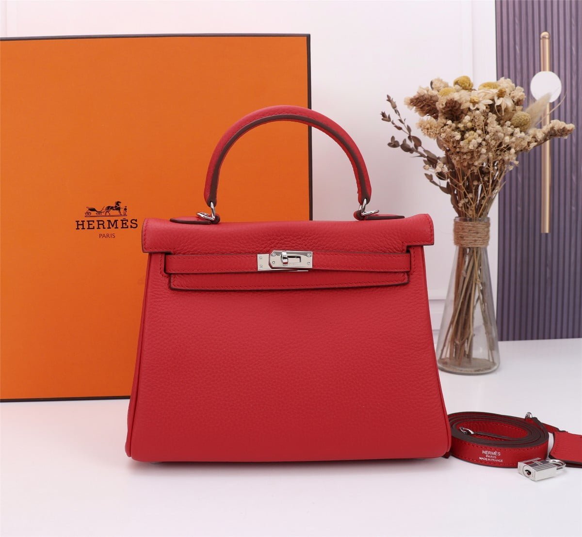 Hermรจs Kelly ๐“๐จ๐ ๐จ Calf Sliver hardware Red size: ๐Ÿฎ๐Ÿฑ๐ถ๐‘š/ ๐Ÿฎ๐Ÿด๐ถ๐‘š