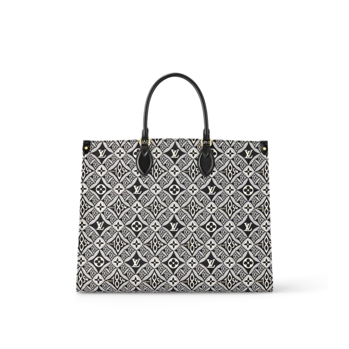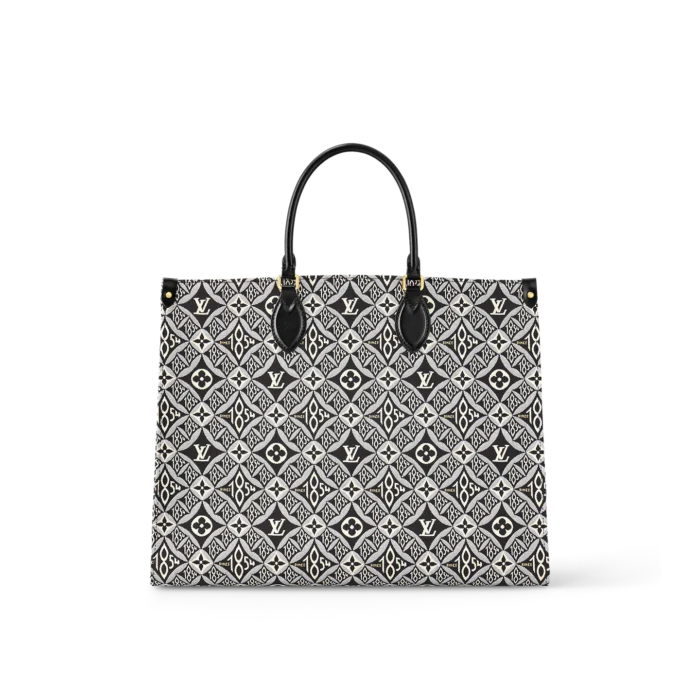 Nicolas Ghesqui??re brings his new Jacquard Since 1854 textile onto the OnTheGo GM tote. This woven textile is inspired by vintage wallpaper patterns and features Monogram Flowers and the number 1854. the year of the House’s founding. With two sets of handles. long and short. and a spacious interior. this is a versatile everyday bag.