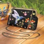 Montgomery Ward 刺绣图标包,蜂鸟或飞蛾图案小花卉钱包,女式刺绣手提包