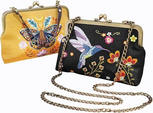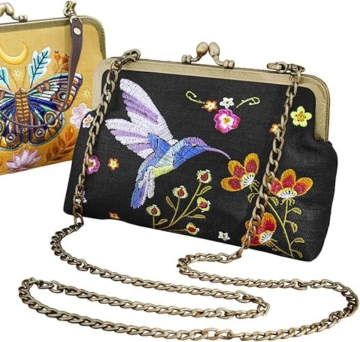 Montgomery Ward 刺绣图标包,蜂鸟或飞蛾图案小花卉钱包,女式刺绣手提包