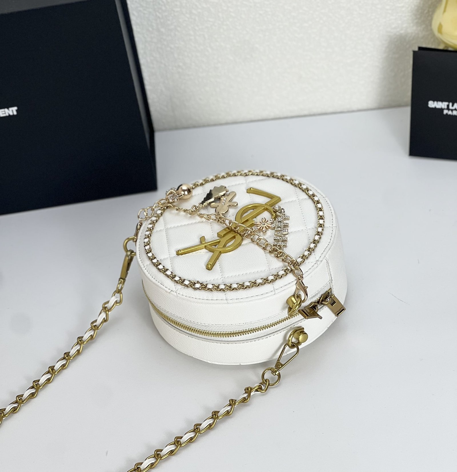 Home BAGS YSL YSL round bun bag with chain strap white size: 17cm
