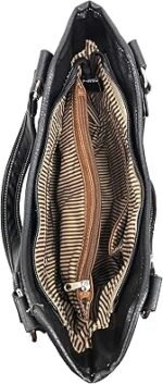 • 手提包尺寸:14 英寸 X 10 英寸 X 4.5 英寸,重量不到 2 磅。柔软的优质 pu 皮革制成。顶部拉链开合 |内部中间拉链隔袋 |内部侧拉链口袋 |多个内部插袋 |后插手机袋(适合大多数手机) |11 英寸肩部长度