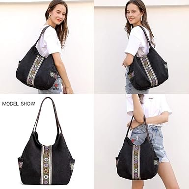 关于此商品 专利设计:我们的产品已在美国注册专利外观设计帆布流浪汉手提包多口袋钱包手提包在以下方面进行了升级: 更大更高的尺寸可以装下ipad;固定的磁铁按钮;隐藏式后袋可以很好地保护您的贵重物品;两个侧袋可容纳瓶子和雨伞;刺绣民族设计使这款流浪汉钱包生动而特别;浅灰色衬里快速找到您的物品;加长加厚的肩带 耐用的材料和大尺寸:高密度 100 % 16 盎司可水洗棉帆布流浪汉手提包;透气的涤棉衬里;优质 PU 皮革;耐用的磁性纽扣和光滑的拉链。约11.8 x 13.3 x 4.7英寸。表带:高度:10.5英寸;约1.47磅 多口袋:2 个大磁扣口袋;1 个大拉链封闭口袋;两个侧袋;1 个隐藏式后袋;2 个不同尺寸的内部开衩口袋;1 个拉链内袋;特殊隔层流浪汉钱包手提包设计可轻松存放您的瑜伽服、ipad、几本书、雨伞、化妆品、钱包等物品井井有条