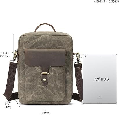 关于此商品 优质耐用性和优质材料:这款复古斜挎包采用重型防水打蜡帆布制成,配有真皮装饰和坚固的黄铜硬件,可承受日常磨损,同时提供永恒、坚固的外观。 多功能携带选项:这款多功能斜挎包设计为斜挎包,配有可调节肩带和顶部提手,可适应您的生活方式,非常适合工作、旅行或休闲郊游。 宽敞的内部空间和完美的尺寸:这款斜挎包的最大尺寸为 9 x 3.1 x 11.8 英寸,结构紧凑但足够宽敞,可以轻松容纳 12.9 英寸平板电脑,并设有额外的口袋,可存放钥匙、钱包和配件,让您的必需品井井有条。 时尚实用的设计:这款耐用的男女皆宜的挎包采用安全的磁性封口、加固缝线和仿旧而精致的美感,集日常和旅行使用于一身的风格和功能性。 非常适合日常使用和送礼:无论是通勤、远足还是跑腿,这款坚固的帆布包都能满足您的所有需求,是送给欣赏品质、多功能性和复古风格的男士和女士的绝佳礼物。