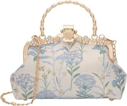 复古刺绣蕾丝花卉手拿包钱包女士正式晚装包吻锁手提包婚礼鸡尾酒会钱包