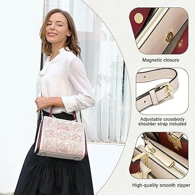 复古刺绣皮革女式手提包 – 优雅单肩手提包和挎包,手提斜挎包
