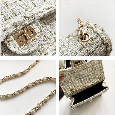 设计师女士单肩包时尚迷你手拿包晚装包绗缝链斜挎包,女士粗花呢钱包