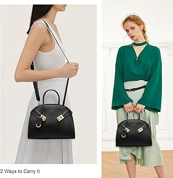 设计师女士皮革手提包:奢华斜挎包和手提包 – 时尚工作手挎包单肩包(黑色)