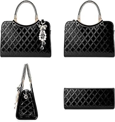 关于此商品 [设计升级]我们加强了这款手提包的手柄。尺寸:11 英寸/28 厘米(长)*7.8 英寸/20 厘米(高)* 4.3 英寸/11 厘米(宽),重量:0.8 公斤/1.76 磅。中等尺寸,满足日常需求。重量轻,不会对手和肩膀造成负担。 [经典女士手提包]超级优雅的设计,配有可拆卸肩带,您可以根据日常需求将这款包用作斜挎包和单肩包。 [闪亮漆皮人造皮革]传统的漆皮包反光严重,太刺眼了。TIBES 女士钱包和手袋采用特殊的合成漆皮和钻石图案制成。简约时尚,可以搭配多种服装风格和日常场景。 【保养】:定期保养可以保持美观状态。如果钱包不小心弄脏了,只需用湿布擦拭,然后让包在通风处晾干即可。非常适合日常使用 [出色的细节]可拆卸的小珍珠吊饰和可调节和可拆卸的肩带,突出 TIBES 钱包的时尚设计。